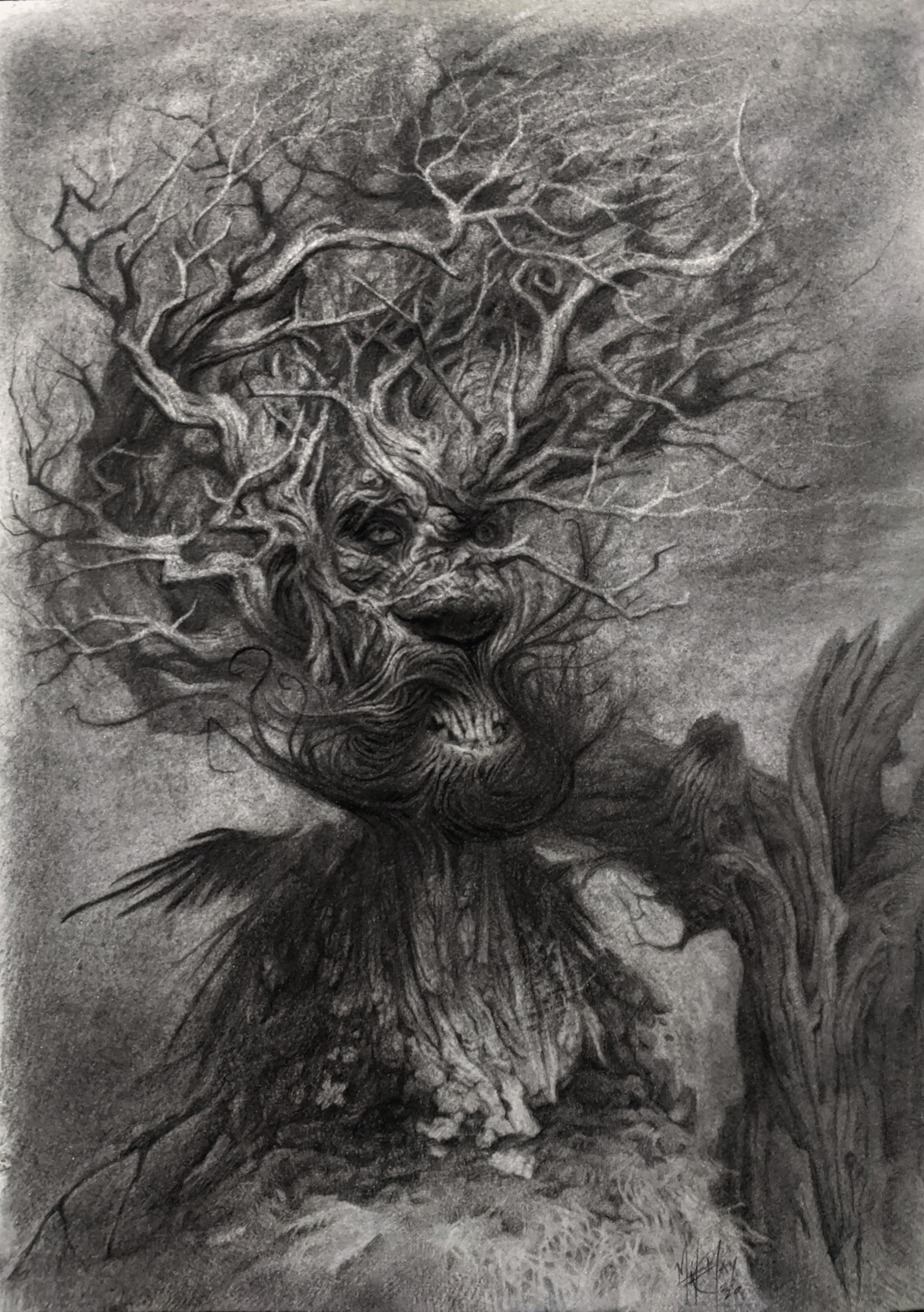 Another one of my anthropomorphic trees. Strange metamorphosis from the original drawing. Had loads of fun on this.
